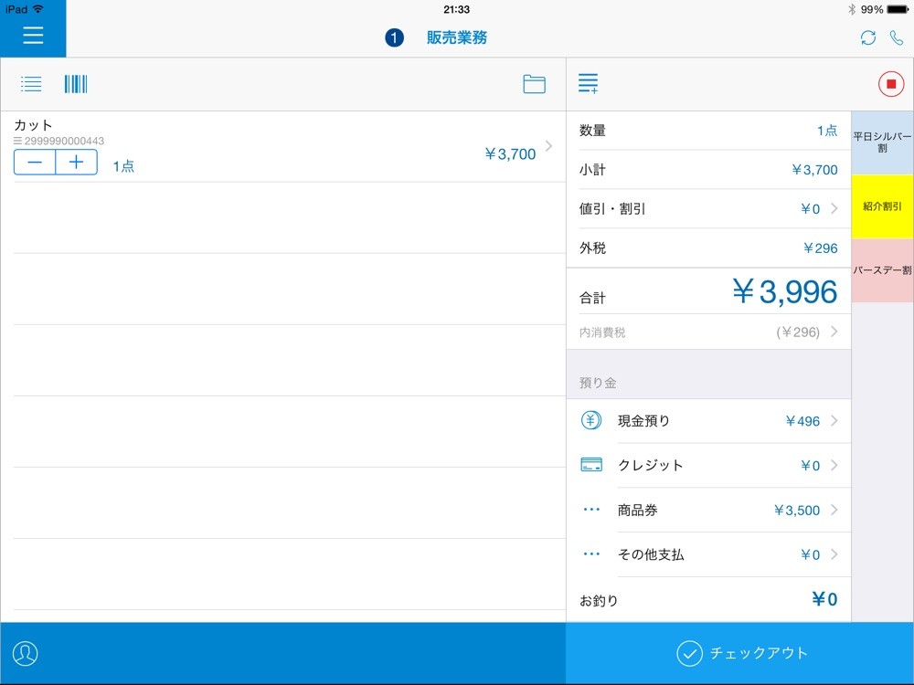 小型店舗は500円単位で使えるので