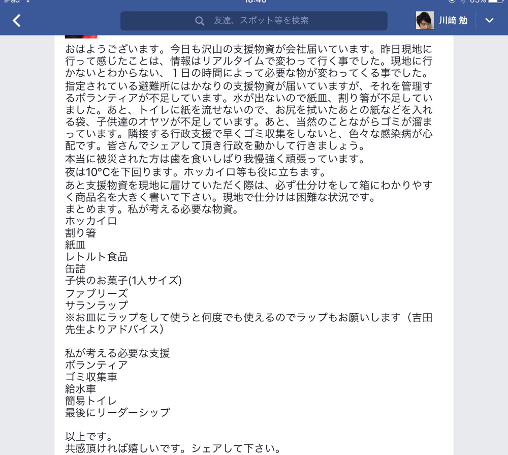 SNSの全く知らない方でもいいから物資を送ってもらおうと決意