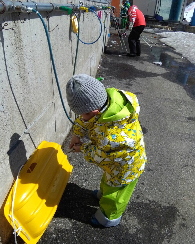 ソリの雪をはらうこの綺麗好きさ